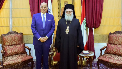 وزير الدفاع اليوناني نقل للبطريرك يوحنا العاشر تعازي بلاده بشهداء كنيسة مار الياس- دويلعة