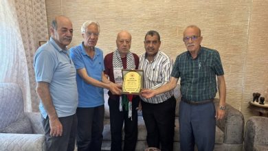 قطاع العمال في الجبهة الديمقراطية يزور المناضل النقابي الرمز علي محي الدين في النبطية ويكرّمه على مواقفه الوطنية والنقابية المؤيدة للشعب الفلسطيني.