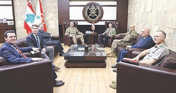 استقبل قائد الجيش العماد جوزاف عون أمس، نائب رئيس أركان الدفاع في الجيش البريطاني للاستراتيجية العسكرية والعمليات اللواء شارل والكر، في حضور السفير البريطاني هاميش كويل، يرافقه الملحق العسكري البريطاني في لبنان المقدم لي ريشارد ساوندرز.