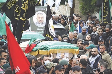 شيع الآلاف من الفلسطينيين واللبنانيين جثمان القيادي في حركة “حماس” صالح العاروري ورفيقيه الذين قضوا في استهداف مكتب تابع للحركة في الضاحية الجنوبية أول من أمس الثلاثاء.