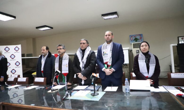 وإن مؤسسات المجتمع المدني النقابية والثقافية والطلابية والاجتماعية في طرابلس والشمال التي هالها ما وصلت إليه الأوضاع في فلسطين المحتلة، وفي ظل الصمت والعجز العربي الرسمي المخزي، وفي مواجهة أدق مرحلة من مراحل الصراع مع الكيان الصهيوني وما تطرحه من مخاطر على المصير العربي برمته، وعلى ضوء الدعم المادي والمعنوي غير المحدود الذي تقدمه الولايات المتحدة الأميركية وبعض الدول الأوروبية للكيان الصهيوني العنصري، نشدد على ضرورة تكاتف كل الجهود لدعم أهلنا في غزة ونبدأ اليوم بالتحضير لأوسع مشاركة لمقاطعة داعمي الكيان الصهيوني على أمل تصعيد تحركاتنا وضغوطنا دعمًا للمقاومين على أرض فلسطين وصمودهم حتى النصر القريب بإذن الله في معركة المصير العربي.