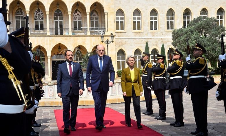أعلن الرئيس القبرصي نيكوس خريستودوليدس من السراي الحكومي، بعد اللقاء الموسع مع رئيس حكومة تصريف الأعمال نجيب ميقاتي ورئيسة المفوضية الأوروبية أورسولا فون دير لاين حول ملف النازحين السوريين في لبنان، عن رزمة دعم شاملة للبنان وهي تشمل مساعدة لبرامج دعم متعددة ولدعم مكافحة التهريب وحماية الحدود.