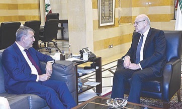 عرض رئيس حكومة تصريف الاعمال نجيب ميقاتي مع قائد القوات الدولية العاملة في جنوب لبنان «اليونيفيل» الجنرال أرولدو لازارو، في السراي، الوضع الأمني في الجنوب والتحضيرات الجارية لرفع التقرير الدوري الى مجلس الامن الدولي بشأن تنفيذ القرار 1701، والتنسيق القائم بين اليونيفيل والجيش. وشارك في الاجتماع مستشار رئيس الحكومة السفير بطرس عساكر. وإجتمع ميقاتي مع وزير الدفاع موريس سليم وبحث معه الاوضاع الامنية في البلاد وشؤونا تتعلق بوزارة الدفاع. واجتمع رئيس الحكومة مع المفوض العام لوكالة الأمم المتحدة لإغاثة وتشغيل اللاجئين الفلسطينيين «الأونروا» فيليب لازاريني في حضور مديرة شؤون المنظمة في لبنان دوروثي كلاوس ورئيس لجنة الحوار اللبناني- الفلسطيني الدكتور باسل الحسن. بعد الاجتماع قال لازاريني: إن وضع الاونروا لا يزال دقيقا من الناحية المالية، ولكنني ابلغت دولة الرئيس اننا سنقوم بكل ما في وسعنا لنحافظ على كل عملنا ونشاطاتنا واستمرارها في لبنان والمنطقة. كما ناقشنا مع دولته ايضا الاعتداءات التي تتعرض لها الوكالات في غزة، وكما نعلم انه تم انتهاك منظمات الأمم المتحدة والأونروا وعملها، فعدد الموظفين الذين قتلوا غير مسبوق فهناك 192 قتيلا حتى الان، كما ان عدد المرافق التي دمرت او تضررت هائل، كذلك فإن عدد القوافل الذي تم اعتراضها او مهاجمتها كبير جدا، بإلإضافة إلى ذلك هناك بعض من يدعي ان الوكالة هي ارهابية وغير ذلك من التعابير. تطرقنا مع دولة الرئيس الى الضغوط التي تتعرض لها الوكالة في لبنان، حيث انه ومنذ اكثر من شهرين يتم منع موظفي الوكالة من الوصول الى مكاتبهم، وقد تمت اعادة فتح المكاتب يوم الجمعة الماضي ولمدة اسبوع فقط، وهذا امر غير مقبول». واستقبل ميقاتي وفدا من الجامعة الثقافية في العالم برئاسة عباس فواز. واستقبل رئيس الحكومة وفدا من لقاء «مستقلون من أجل لبنان» ضم الامين العام رافي ماديان وعددا من الاعضاء. واستقبل رئيس الحكومة وزير الاعلام الاسبق وليد الداعوق. كما استقبل الاعلامي ابراهيم عوض الذي قدّم له كتابه الجديد «مهمات سريّة في حياتي الصحفية»، وسلمه دعوة لحفل التوقيع في الثلاثين من أيار الحالي في طرابلس.