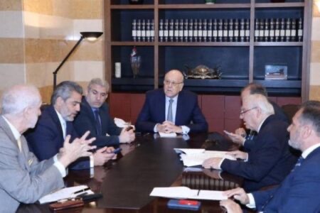 رأس رئيس حكومة تصريف الاعمال نجيب ميقاتي اجتماعا في السراي ضم وزير العمل مصطفى بيرم، الأمين العام لمجلس الوزراء محمود مكية، رئيس الخدمة المدنية الأسبق منذر الخطيب ومستشار رئيس الحكومة السابق الوزبر السابق نقولا نحاس.