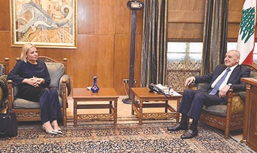 استقبل رئيس مجلس النواب نبيه بري في مقر الرئاسة الثانية في عين التينة المنسقة الخاصة للأمم المتحدة في لبنان جينين هينيس بلاسخارت حيث جرى عرض للمستجدات والأوضاع لاسيما السياسية والميدانية منها في لبنان والمنطقة على ضوء مواصلة إسرائيل لعدوانها على لبنان وقطاع غزة .