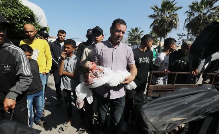 وأفاد مصدر طبي في مستشفى شهداء الأقصى باستشهاد أم وزوجها وطفليها ووقوع عدد من الإصابات، جراء قصف المقاتلات الإسرائيلية منزلا لعائلة العديني بمنطقة البركة بمدينة دير البلح وسط القطاع.