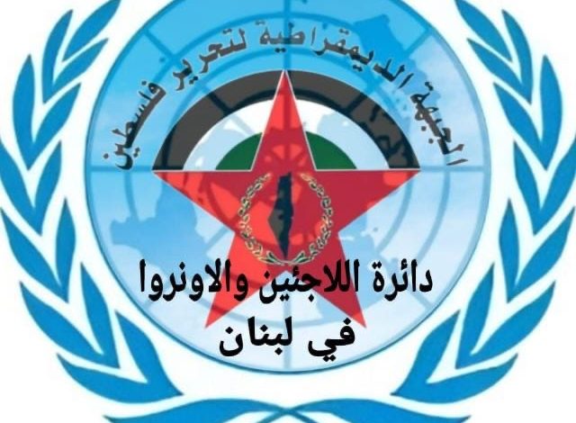 بيان صادر عن دائرة اللاجئين والاونروا في الجبهة الديمقراطية.