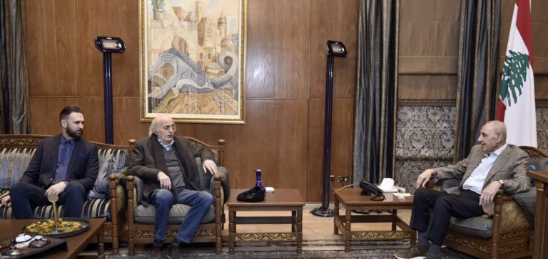 استقبل رئيس مجلس النواب نبيه بري مساء اليوم في مقر الرئاسة الثانية في عين التينة، الرئيس السابق للحزب التقدمي الإشتراكي النائب السابق وليد جنبلاط يرافقه رئيس الحزب رئيس “اللقاء الديموقراطي” النائب تيمور جنبلاط. وتناول اللقاء تطورات الأوضاع العامة في لبنان والمنطقة وآخر المستجدات السياسية لاسيما الملف الرئاسي وأجواء ونتائج لقاء جنبلاط مع الرئيس الفرنسي إيمانويل ماكرون .