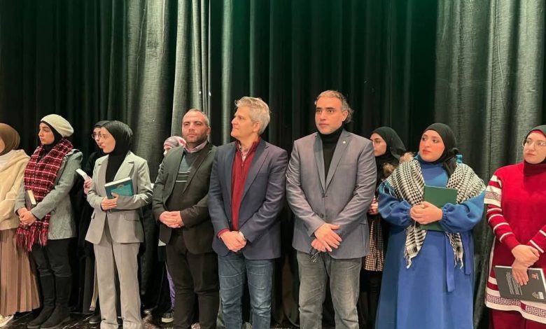 وألقى الأستاذ عصام الخضر قصيدة بعنوان ” العزة” جلد بها العرب المطبّعين والخائنين.