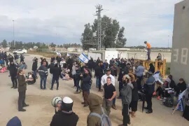أعاق مئات المتظاهرين الإسرائيليين حركة شاحنات محملة بالبضائع كانت متجهة إلى قطاع غزة عند معبر كرم أبو سالم رغم إعلان المكان منطقة عسكرية مغلقة من قبل الجيش الإسرائيلي.