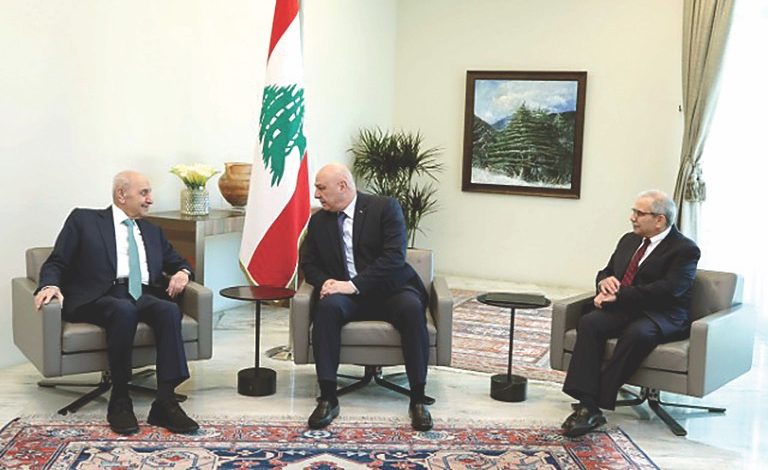وكان الرئيس عون استقبل الرئيس سلام في قصر بعبدا، وعرض معه آخر اتصالات مسار عملية تشكيل الحكومة، قبل ان ينضم اليهما عند الثانية والربع رئيس مجلس النواب نبيه بري، فيما استدعي في وقت لاحق الامين العام لمجلس الوزراء القاضي محمود مكية الذي تولى تلاوة المراسيم.