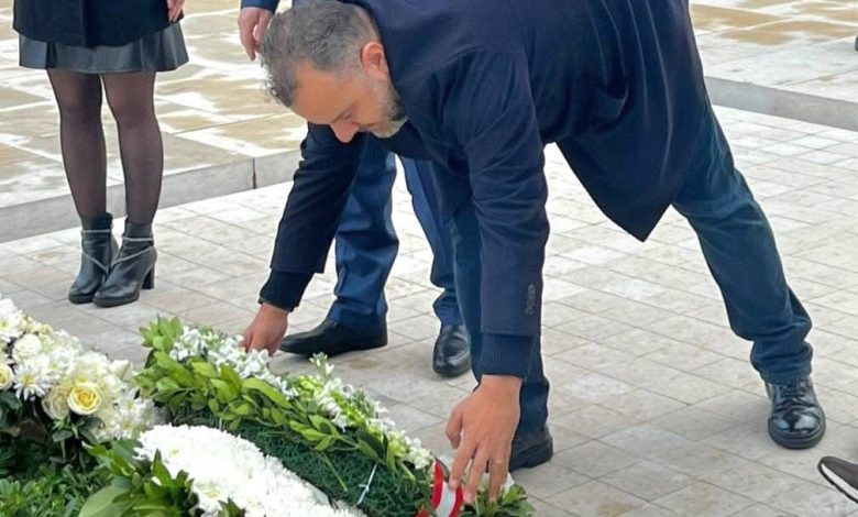 تشرفت اليوم بوضع إكليل من الزهر والغار على ضريحه، داعيًا الله أن يرحمه ويسكنه فسيح جناته. ستبقى ذكراه حيّة في وجدان الوطن”.