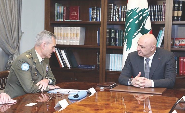 ابلغ رئيس الجمهورية العماد جوزاف عون قائد القوات الدولية في الجنوب «اليونيفيل» الجنرال ارولدو لازارو Aroldo Lazarro في خلال استقباله امس في قصر بعبدا مع وفد من «اليونيفيل»، ان «الجيش اللبناني يواصل انتشاره في القرى والبلدات الجنوبية التي اخلتها إسرائيل، ويتولى تنظيفها من الألغام وإزالة كل المظاهر المسلحة فيها على رغم اتساع مساحة الأراضي الجنوبية وطبيعتها الامر الذي يأخذ وقتا». واشار الرئيس عون الى ان «استمرار الاحتلال الإسرائيلي للتلال الخمس يجب ان ينتهي في اسرع وقت ممكن لتأمين الاستقرار والامن على طول الحدود الجنوبية تمهيدا لاستكمال عودة الأهالي الى قراهم»، واكد ان «عملية تطويع العسكريين تنفيذا لقرار مجلس الوزراء مستمرة لتأمين 4500 عسكري سوف يتولون مع القوات الموجودة حاليا، بسط الامن في الجنوب وتطبيق القرار 1701 بالتعاون مع «اليونيفيل» التي نقدر الجهود التي تبذلها بالتنسيق مع الجيش».