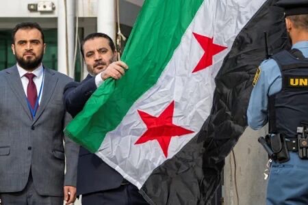 رفع وزير الخارجية السوري أسعد الشيباني، الجمعة، علم بلاده الجديد أمام مقر الأمم المتحدة بمدينة نيويورك، في خطوة رمزية قالت دمشق إنها تهدف إلى تعزيز دور سوريا في المنظمات الدولية.