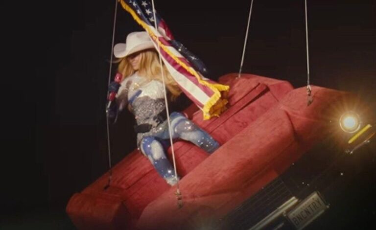 خلال حفل أُقيم في ملعب في مدينة هيوستن، ضمن أولى محطات جولتها “كاوبوي كارتر” حيث علقت في الهواء.