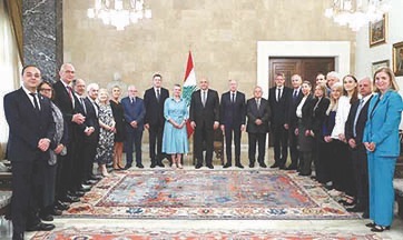 وفد أوروبي وسفراء الاتحاد الأوروبي: كما التقى رئيس الجمهورية وفداً أوروبياً وسفراء الاتحاد الأوروبي، وقال: نطالب الاتحاد الأوروبي بدعم لبنان في استعادة كامل أراضيه وبسط سيادة الدولة اللبنانية عليها، بما يشمل كافة المناطق دون استثناء، وذلك عبر إطلاق مبادرة شاملة لدعم الجيش اللبناني، بما يملكه من دور أساسي في حفظ الأمن والاستقرار، وتزويده بكل الوسائل اللوجستية والتقنية والمالية اللازمة.