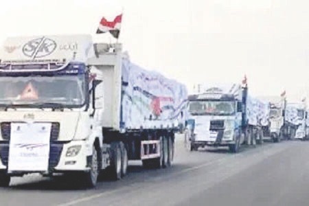 دخول قوافل مساعدات إلى غزة عبر معبر رفح بالتزامن مع إعلان هدن إنسانية