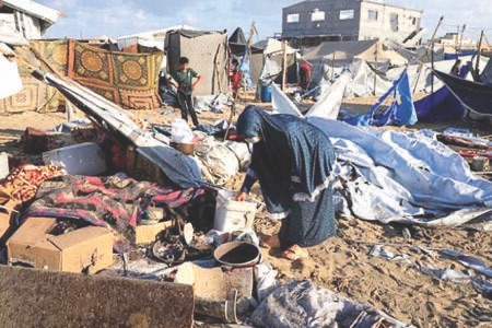 واستشهد 5 فلسطينيين في قصف إسرائيلي استهدف خياما للنازحين في مخيم أطياف بمنطقة المواصي غربي مدينة خان يونس جنوبي القطاع.