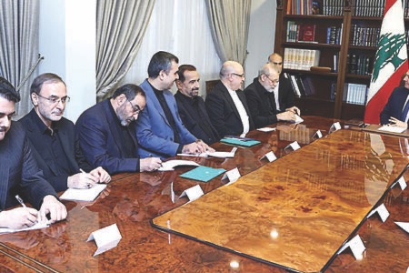 فقد ابلغ عون، لاريجاني اذاً، ان لبنان راغب في التعاون مع ايران ضمن حدود السيادة والصداقة القائمين على الاحترام المتبادل، لافتا الى ان اللغة التي سمعها لبنان في الفترة الأخيرة من بعض المسؤولين الإيرانيين، غير مساعدة. واكد الرئيس عون ان الصداقة التي نريد ان تجمع بين لبنان وايران لا يجب ان تكون من خلال طائفة واحدة او مكوّن لبناني واحد، بل مع جميع اللبنانيين. وشدد رئيس الجمهورية على ان لبنان وطن نهائي لجميع أبنائه، مسيحيين كانوا ام مسلمين، والدولة اللبنانية مسؤولة من خلال مؤسساتها الدستورية والأمنية عن حماية كافة المكونات اللبنانية. ولفت الرئيس عون المسؤول الإيراني، الى ان من يمثل الشعب اللبناني هي المؤسسات الدستورية التي ترعى مصالحه العليا ومصالح الدولة، واذا كانت الجمهورية الإسلامية الإيرانية تسعى الى تحقيق مصالحها الكبرى فهذا شيء طبيعي، «لكننا نحن في لبنان نسعى الى تحقيق مصالحنا». وأضاف: «نرفض أي تدخل في شؤوننا الداخلية من أي جهة اتى، ونريد ان تبقى الساحة اللبنانية آمنة ومستقرة لما فيه مصلحة جميع اللبنانيين من دون تمييز. ان لبنان الذي لا يتدخل مطلقا بشؤون أي دولة أخرى ويحترم خصوصياتها ومنها ايران، لا يرضى ان يتدخل احد في شؤونه الداخلية. واذا كان عبر التاريخ اللبناني ثمة من استقوى بالخارج على الاخر في الداخل، فالجميع دفع الثمن غالياً، والعبرة التي يستخلصها اللبنانيون هي انه من غير المسموح لاي جهة كانت ومن دون أي استثناء ان يحمل احد السلاح ويستقوي بالخارج ضد اللبناني الآخر وشدد الرئيس عون على ان الدولة اللبنانية وقواها المسلحة مسؤولة عن امن جميع اللبنانيين من دون أي استثناء. واعتبر ان أي تحديات تأتي من العدو الإسرائيلي او من غيره، هي تحديات لجميع اللبنانيين وليس لفريق منهم فقط، ولعل اهم سلاح لمواجهتها هو وحدة اللبنانيين. وهذا ما نعمل له ونأمل ان نلقى التعاون اللازم، لاسيما واننا لن نتردد في قبول أي مساعدة في هذا الصدد.