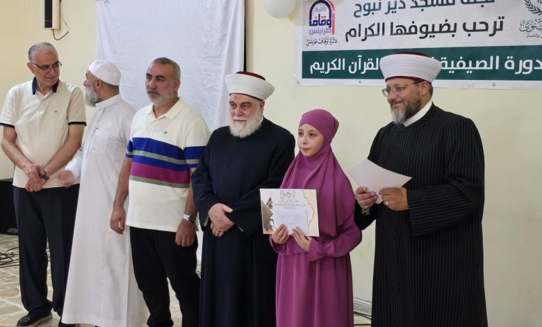 أقامت لجنة مسجد دير نبوح الحفل الختامي للدورة الصيفية لتحفيظ القرآن الكريم في قاعة البلدة وذلك بحضور عضو المجلس الإسلامي الشرعي الأعلى الدكتور منذر حمزة، رئيس بلدية دير نبوح خضر محمد، الشيخ موفق المير، الشيخ وليد طرطوسي، أعضاء المجلس البلدي في القرية، وحشد من مخاتير وفعاليات وأهالي القرية.