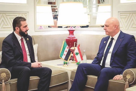 كما التقى الرئيس عون الرئيس السوري احمد الشرع، في حضور وزير الخارجية السورية اسعد الشيباني، والوزير رجي وأعضاء الوفد اللبناني، وعرضا العلاقات بين البلدين وسبل تطويرها، وضرورة التنسيق بما يضمن المحافظة على الاستقرار على طول الحدود. كما تطرق البحث الى أهمية التعاون لما فيه مصلحة البلدين، ولا سيما ترسيم الحدود البحرية، وملف النازحين السوريين حيث اعرب الرئيس الشرع عن ارتياحه لبدء عودة مجموعات من النازحين الى الأراضي السورية. كما تناول البحث ضرورة التنسيق فيما خص النقاط التي أثيرت بين الوفدين اللبناني والسوري خلال المحادثات التي أجريت في بيروت في ملف الموقوفين، والتأكيد على أهمية التعاون القضائي بين البلدين للبت في هذا الملف، وفقاً للقوانين المعمول بها.