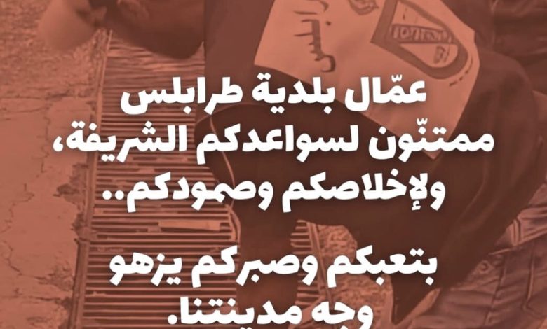 كل الشكر والتقدير لعمّال بلدية طرابلس، الذين يحملون على عاتقهم نظافة مدينتنا، ويعملون بإخلاص رغم الظروف الصعبة.