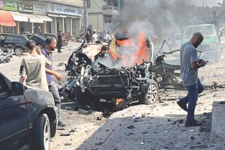 فقد استهدفت غارة من مسيّرة إسرائيلية امس سيارة على طريق زبدين في منطقة النبطية وأدت إلى «سقوط شهيدين وإصابة مواطن بجروح»، وفق وزارة الصحة. وافيد ان الغارة تسببت باستشهاد حسن عطوي وهو مصاب بايجر وفاقد النظر وزوجته زينب رسلان التي كانت تقود السيارة، وهما فقدا ولديهما مع بداية «حرب الاسناد».