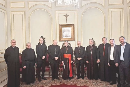 استقبل البطريرك الماروني الكاردينال مار بشارة بطرس الراعي في الصرح البطريركي في بكركي السفير البابوي في لبنان المونسنيور باولو بورجيا ،مع وفد من الكرسي الرسولي، ضم كبير المسؤولين عن الليتورجيا الحبريّة في الفاتيكان المطران دييغو فاريلّي، في حضور رئيس اللجنة التنظيميّة لزيارة البابا الى لبنان المطران ميشال عون والمسؤول عن لجنة الشبيبة المطران جوزيف نفاع إضافة الى عدد من الكهنة والعلمانيين والمنسقين في مجلس البطاركة والأساقفة الكاثوليك في لبنان، وذلك في اطار التحضير لزيارة البابا نهاية الشهر المقبل للبنان، والتي تشمل مزار السيدة العذراء في حريصا، حيث لقاء المكرّسين والمكرّسات، مرورًا بالصرح البطريركي في بكركي للقاء الشبيبة ثم دير مار مارون – عنايا حيث ضريح القديس شربل، وصولًا الى دير الصليب إضافة الى الاحتفال بالقداس الإلهي في بيروت. ومن زوار الراعي: وفد من طلاب الصف الثانوي في مدرسة راهبات العائلة المقدسة الفرنسيات – الفنار، يرافقه كهنة. وأكد البطريرك أهمية «ما تحمله من أمل، زيارة البابا لاون الرابع عشر المرتقبة الى لبنان بالنسبة للشبيبة التي ستلتقي قداسته في الصرح البطريركي،» مشددا على «أهميتها لكونها الزيارة الرسولية الأولى لقداسة البابا».