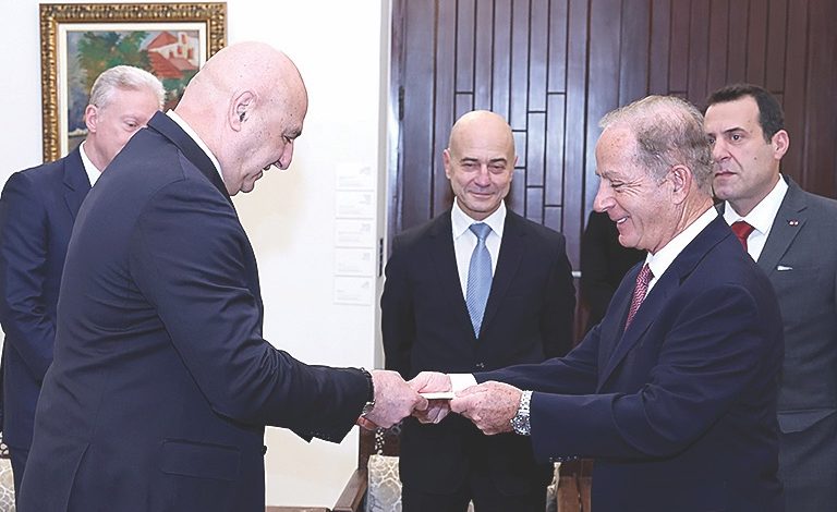 بين جولة السفير الاميركي الجديد ميشال عيسى على المسؤولين مسلّماً اوراق اعتماده من جهة، والوفد السعودي الذي وصل بيروت من جهة ثانية، والوضع الامني الجنوبي، توزع الحدث امس. فقد تسلم رئيس الجمهورية العماد جوزاف عون قبل الظهر اوراق اعتماد السفير عيسى في احتفال أقيم في القصر الجمهوري. ولدى وصول السفير عيسى الى الساحة الخارجية لقصر بعبدا، أقيمت المراسم والتشريفات المعتمدة. وقدَّم أوراق اعتماده الموقعة من الرئيس الأميركي دونالد ترامب الى الرئيس عون، واعرب عن سعادته لتعيينه في لبنان، ناقلا تحيات الرئيس الأميركي، ومؤكدا العمل لتعزيز العلاقات اللبنانية- الأميركية وتطويرها في المجالات كافة. ورحب الرئيس عون بالسفير عيسى متمنيًا له التوفيق في مهامه لاسيما وانه من أصل لبناني، مشدداً على أهمية العلاقات بين لبنان والولايات المتحدة.