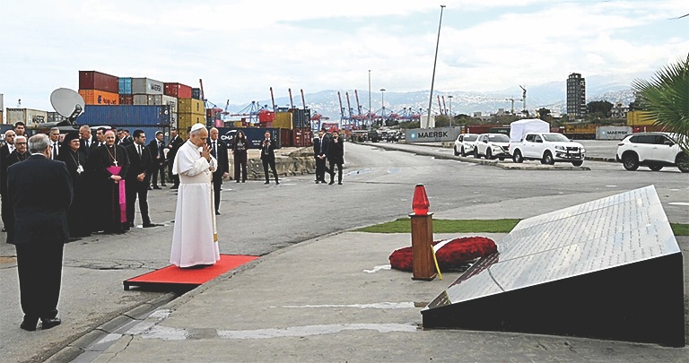 وقال: «فخلال الأيام الماضية، حملتم إلى لبنان كلمات رجاء و أمل، وجلتم بين مناطقه، والتقيتم بشعبه الذي استقبلكم بكافة طوائفه وإنتماءاته بمحبة كبيرة تعكس توقه الدائم للسلام والاستقرار». أضاف متوجها الى البابا: «لقد جئتم إلى لبنان حاملين رسالة سلام، وداعين إلى المصالحة، ومؤكّدين أن هذا الوطن الصغير في مساحته، الكبير برسالته، ما زال يشكّل نموذجًا للعيش المشترك وللقيم الإنسانية التي تجمع ولا تفرّق. وفي كلماتكم ، وفي لقاءاتكم مع أبناء هذا البلد، لمسنا عمق محبتكم للبنان وشعبه، وصدق رغبتكم في أن يبقى وطن الرسالة، وطن الحوار، وطن الانفتاح، وطن الحرية لكل انسان والكرامة لكل انسان، فشكراً لكم يا صاحبَ القداسة، لأنكم استمعتم إلينا (…)». وأكد عون «أن شعبنا شعب مؤمن يرفض الموت والرحيل، شعب مؤمن قرر الصمود بالمحبة والسلامِ والحق. شعب مؤمن يستحق الحياة وتليق به». ورد البابا، بكلمة ، قال فيها: «المغادرة أصعب من الوصول كنّا معًا، وفي لبنان أن نكونَ معا هو أمرٌ مُعدٍ . وجدتُ هنا شعبًا لا يحبُّ العَزلَةَ بل اللقاء. فإن كانَ الوصولُ يعني الدخول برفق في ثقافتِكم، فإنَّ مغادرة هذه الأرض تعني أن أحملكم في قلبي (…)». وتابع: «صلَّيتُ من أجل جميع الضحايا، وأحمل معي الألم والعطش إلى الحقيقة والعدالة للعائلات الكثيرة، ولبَلَدِكم بأكمله (…)».. وتوجه الى الشعب اللبناني: «(…) التقيتُ في هذهِ الأيام القليلة وجوهًا كثيرة وصافحت أيادِي عديدة، مُستَمِدًّا من هذا الاتصال الجسدي والداخلي طاقة من الرّجاء. أنتم أقوياء مِثل أشجار الأرز، أشجار جبالكم الجميلة، وممتلئون بالثَّمار كالزيتون الذي ينمو في السهول، وفي الجنوب وبالقُرب من البحر. أُحيِي جميع مناطِقِ لبنان التي لم أتمكَّن من زيارتها: طرابلس والشمال، والبقاع والجنوب، الذي يعيش بصورة خاصّةٍ حالة من الصراع وعدم الاستقرار أعانقُ الجميع وأرسل إلى الجميع أماني بالسّلام». ووجه نداء «من كل قلبي»: لِتتوقَف الهجمات والأعمال العدائية. ولا يظِنَ أحد بعد الآن أنّ القتال المسلح يجلِب أَيةَ فائِدَة. فالأسلحة تقتل، أمّا التفاوض والوساطة والحوارُ فتَبني. لِنَختَر جميعا السّلامَ وليَكُن السّلامُ طريقنا، لا هدفًا فقط (…)». بارك الله شعب لبنان، وجميعكم، والشرق الأوسط، وكلَّ البشريّة». وكان البابا التقى رؤساء الطوائف في لبنان في لقاء روحي مسكوني أقيم في ساحة الشهداء، وألقيت كلمات لكل للمرجعيات الروحية الأسلامية، رحبت بالبابا وأكدت رسالة لبنان في العيش المشترك والسلام، في حين دعا الحاضرين الى ان «تكونوا بناة سلام وتواجهوا عدم التسامح وتنيروا الطريق نحو العدل والوئام».