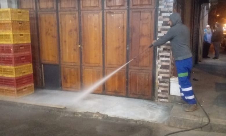 شملت الحملة أعمال الكنس والشطف لمداخل المحال التجارية ودور العبادة والممرات وتنظيف وتعقيم المستوعبات.