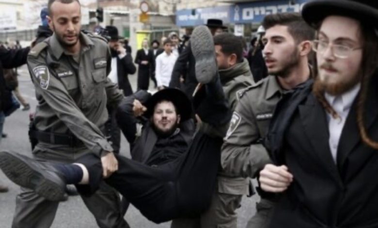 ووفق ما نقل”، فقد وقعت مصادمات بين الأمن الإسرائيلي ومتظاهرين من الحريديم احتجاجًا على قانون يلزمهم بالخضوع للتجنيد الإجباري.