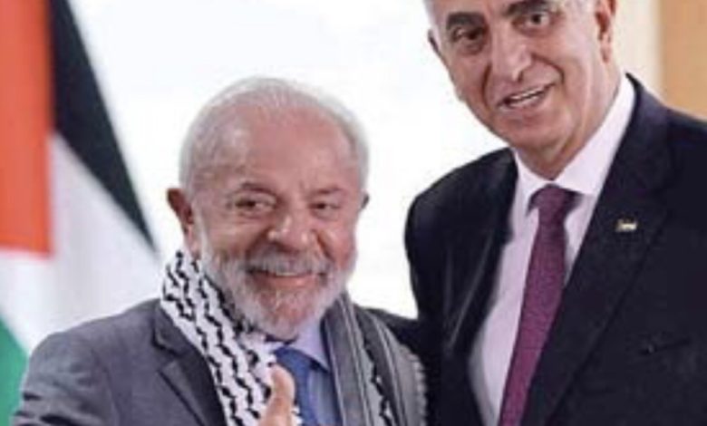 تداول مستخدمون عبر مواقع التواصل مقطع فيديو يوثق ارتداء الرئيس البرازيلي لولا دا سيلفا الكوفية الفلسطينية خلال مراسم تقديم السفير الفلسطيني الجديد مروان البوريني أوراق اعتماده لدى البرازيل في قصر “بلانالتو” بالعاصمة برازيليا.