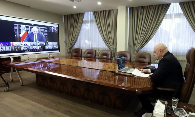 الرئيس عون اطلق مبادرة لوقف التصعيد في اجتماع افتراضي دعا اليه الاتحاد الاوروبي بمشاركة قادة 13 دولة: